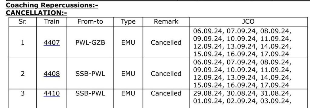 04407/08 पलवल गाजियाबाद/ शकूरबस्ती पलवल 06/9 से 17/9 तक रद्द