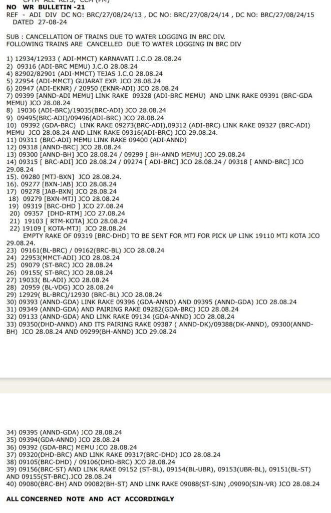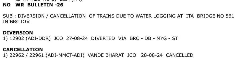 ब्रेकिंग न्यूज : वडोदरा स्टेशन से नियमित मार्ग से गाड़ियाँ धीमे गति से निकाली जा रही है।