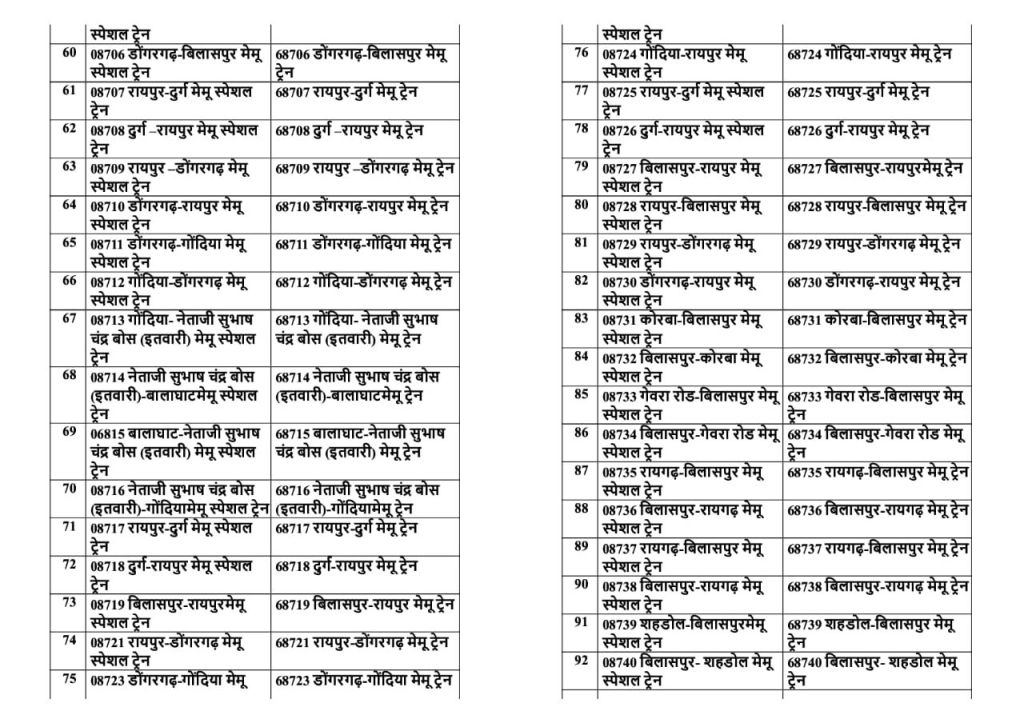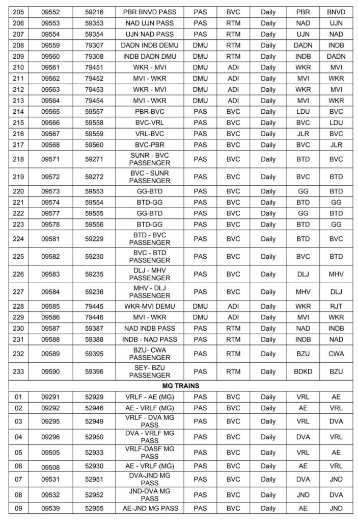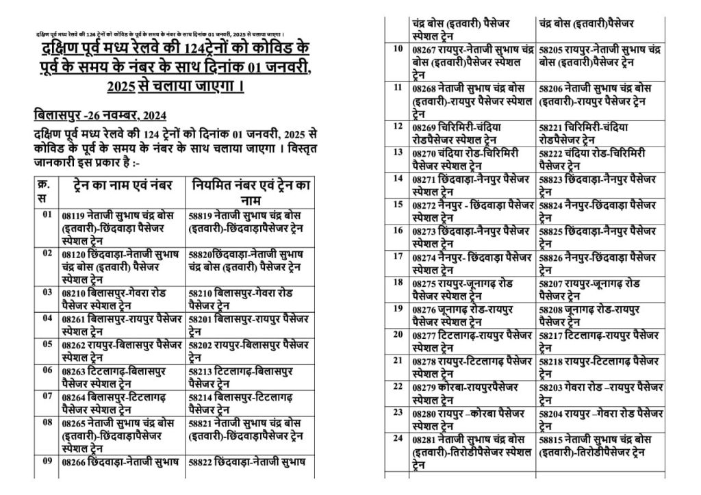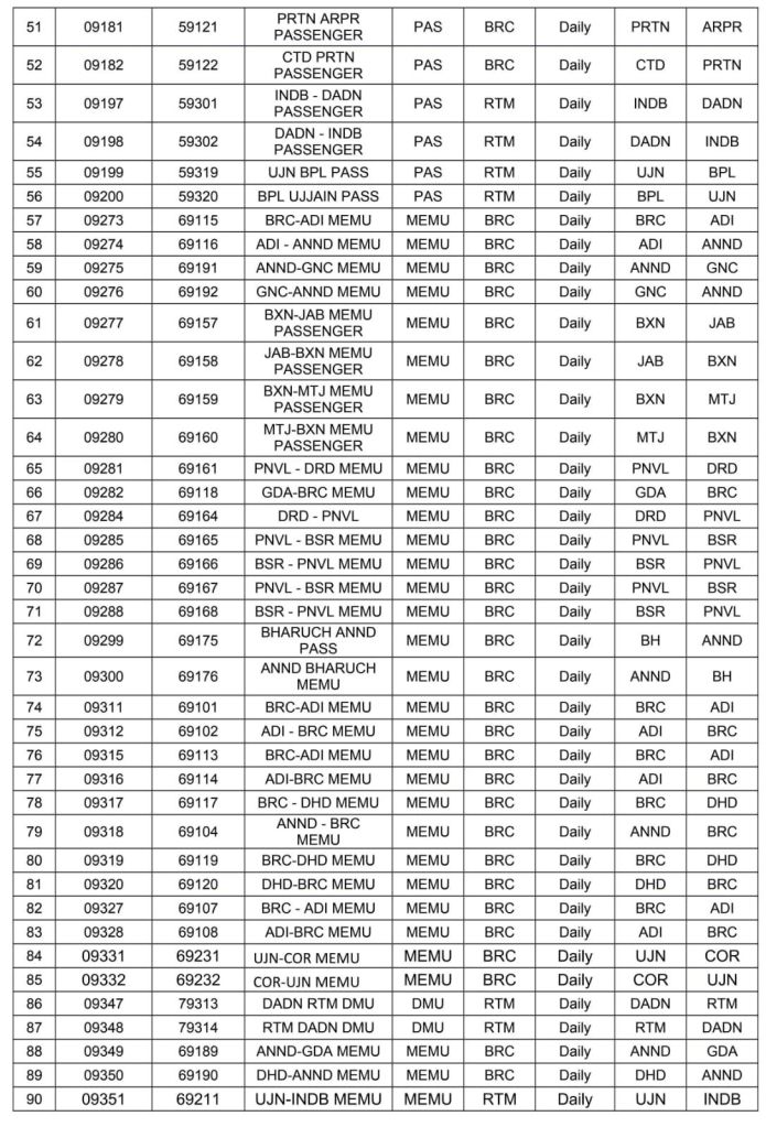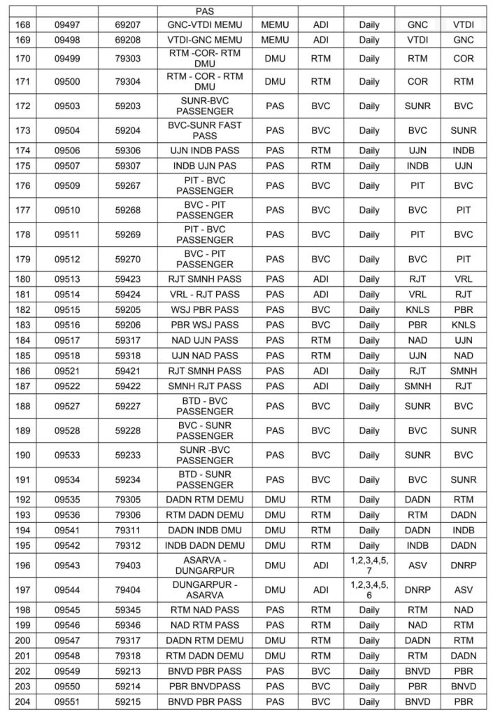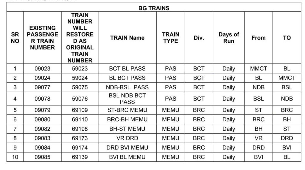 रेल प्रशासन ने संक्रमण काल मे बदले, सवारी गाड़ियोंके विशेष गाड़ी क्रमांक की पुनर्बहाली शुरू कर दी है। सन 2025 की पहली जनवरी से यह सवारी विशेष गाड़ियाँ नियमित गाड़ी क्रमांक से चलाई जायेगी। युँ तो इनके सवारी किराए पहले ही लागू हो गए है केवल 0 क्रमांक से शुरू गाड़ी क्रमांक अब 5 से सवारी, 6 से मेमू और 7 से डेमू के नियमित गाड़ी क्रमांक से यह गाड़ियाँ परिचालित होंगी।