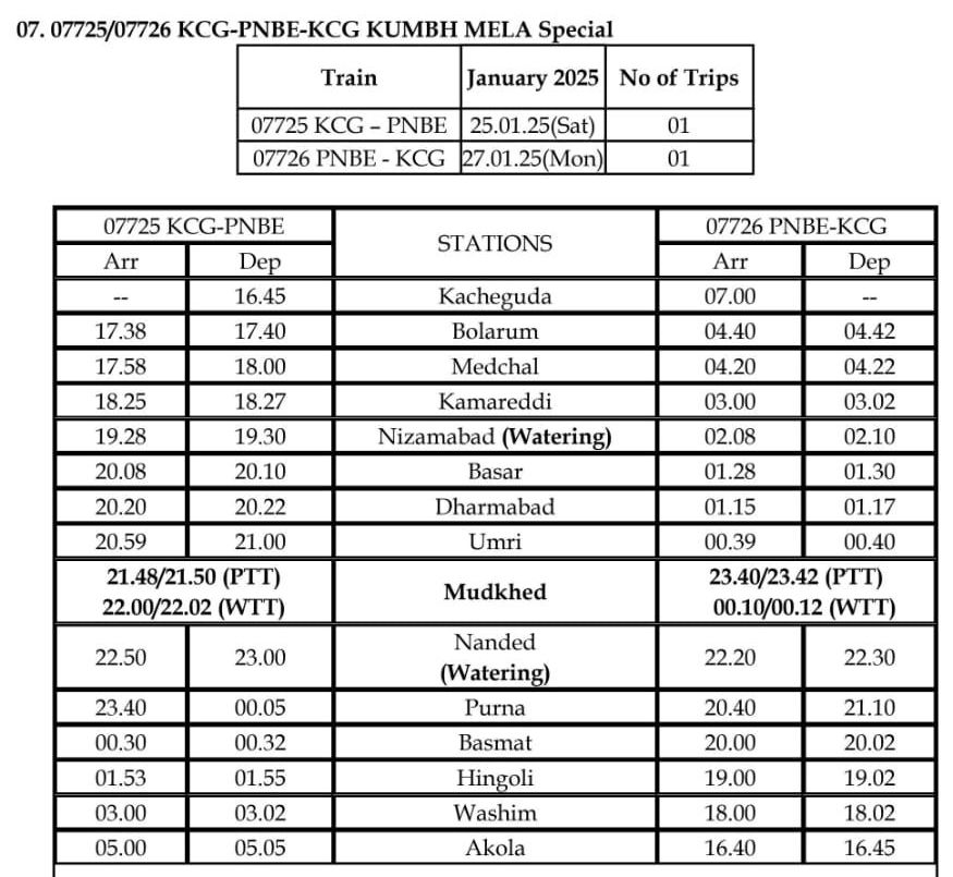 07725/26 काचेगुड़ा पटना काचेगुड़ा महाकुम्भ विशेष ( 1 – 1 )