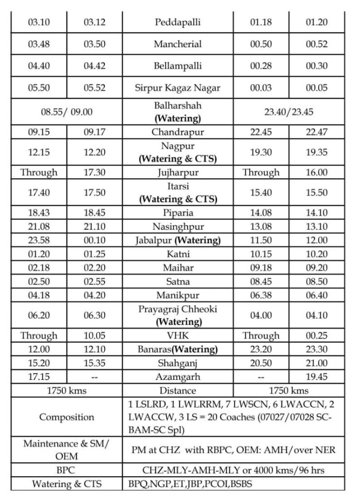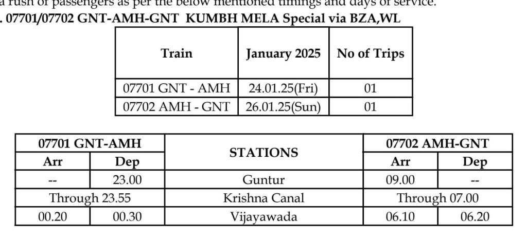 07701/02 गुण्टूर आजमगढ़ गुण्टूर महाकुम्भ विशेष (1 – 1 फेरे)
