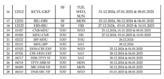 यात्रीगण कृपया उपरोक्त रेल मार्ग पर सम्बंधित तिथियों में यात्रा का नियोजन रेल हेल्पलाइन 139 से परामर्श कर करें।