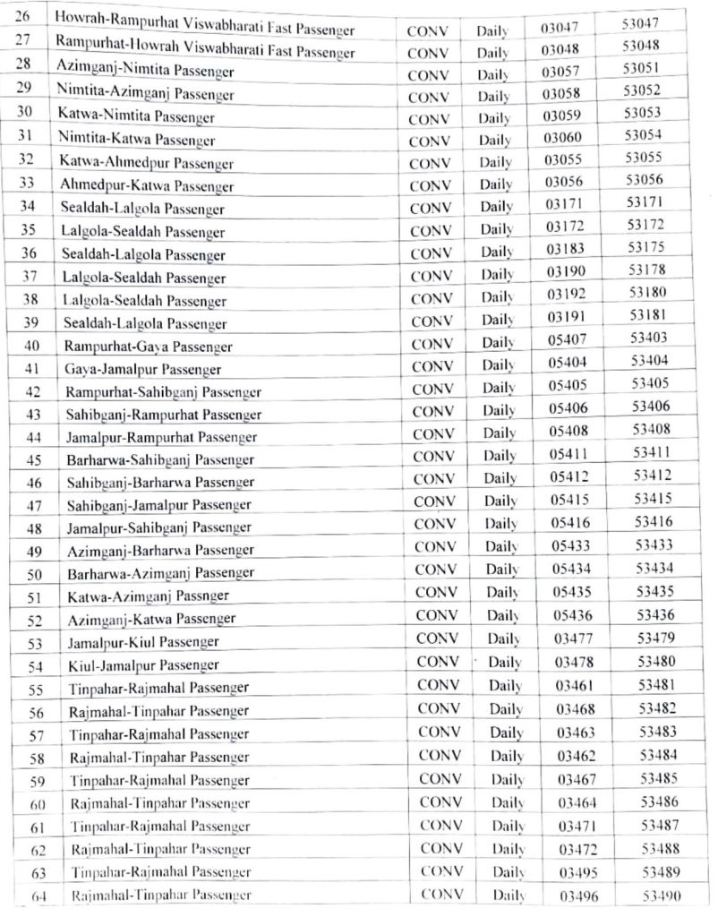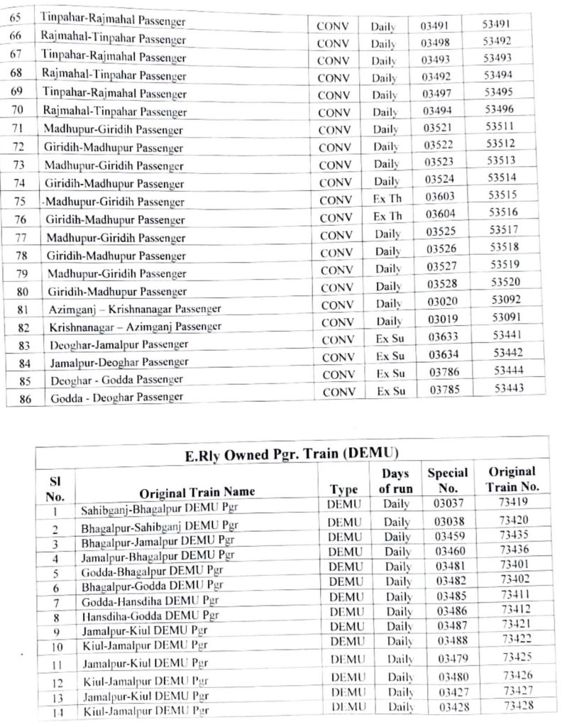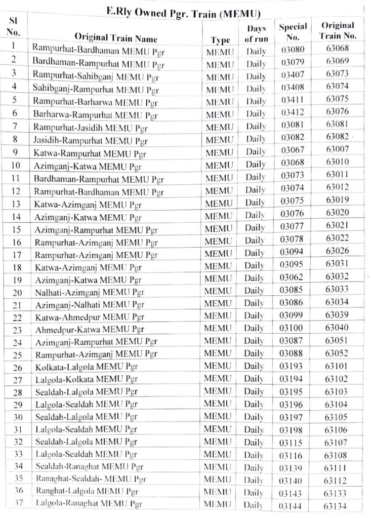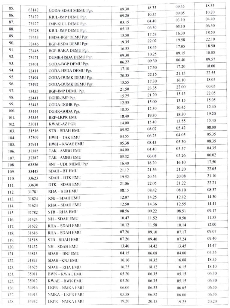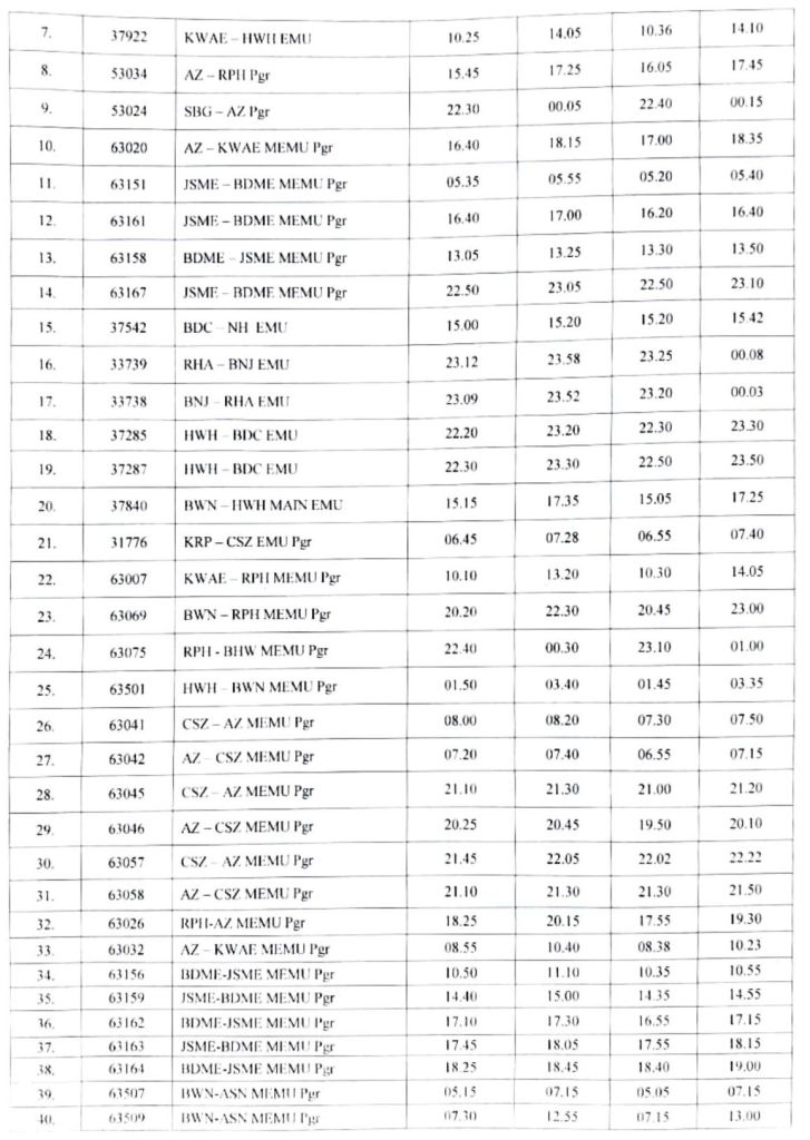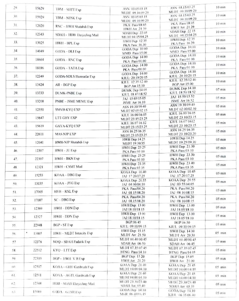 भारतीय रेल की समयसारणी 01 जनवरी 2025 से बदली जा रही है। सभी गाड़ियोंमे किए गए बदलाव NTES नैशनल ट्रेन इन्क्वायरी सिस्टम पर दिनांक 01 जनवरी 2025 पर उपलब्ध हो जाएंगे। इसमे पूर्व रेल ER द्वारा किए जाने वाले बदलावों के प्रमुख अंश..