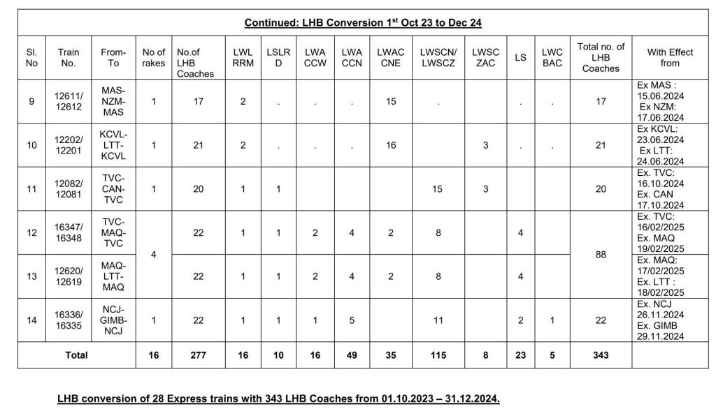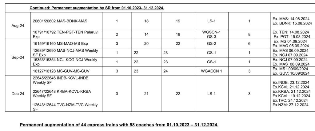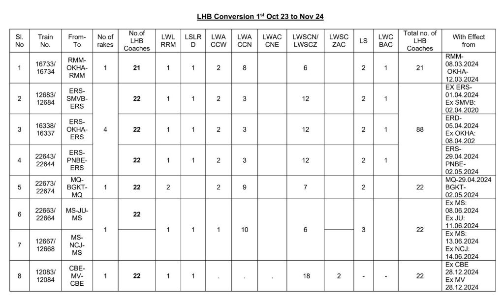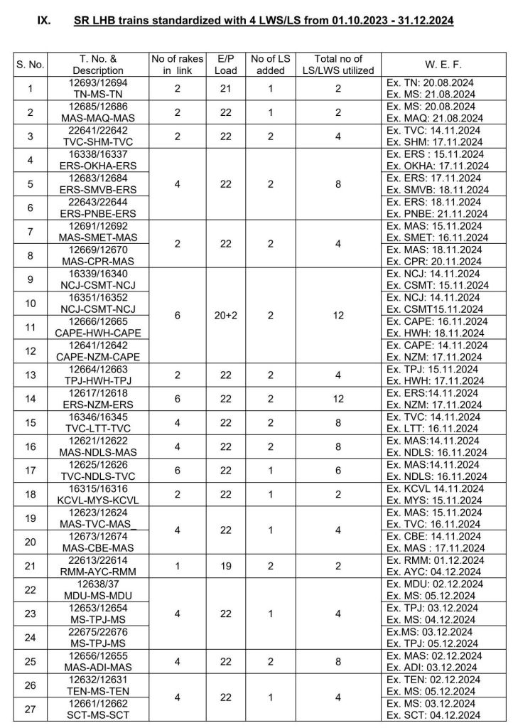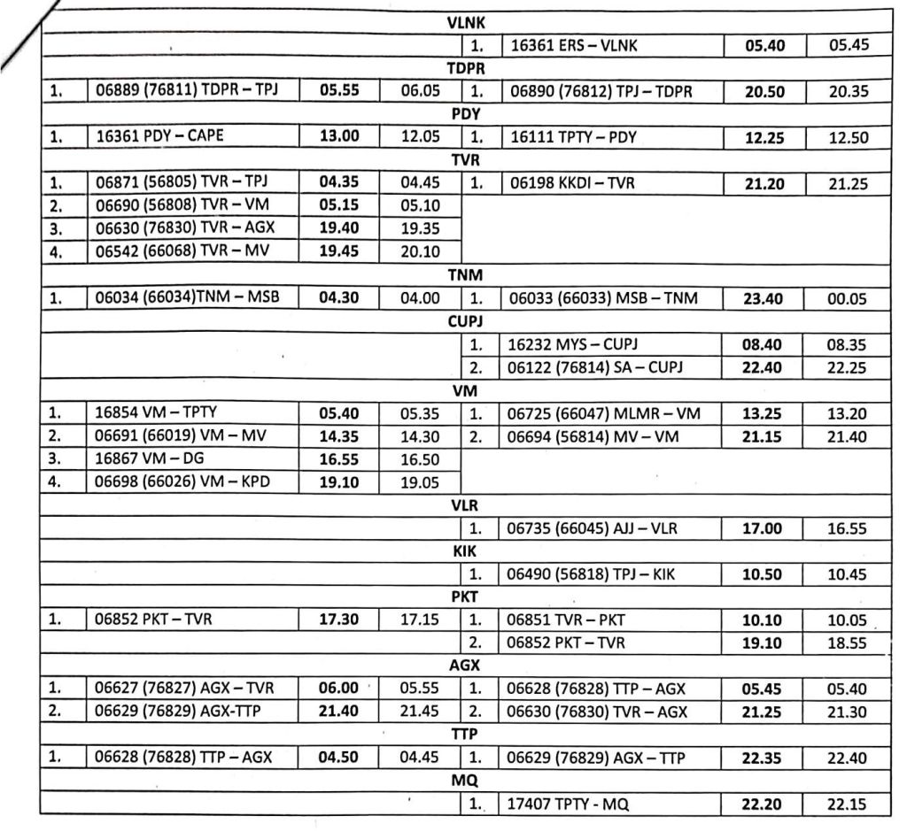 भारतीय रेल की समयसारणी 01 जनवरी 2025 से बदली जा रही है। सभी गाड़ियोंमे किए गए बदलाव NTES नैशनल ट्रेन इन्क्वायरी सिस्टम पर दिनांक 01 जनवरी 2025 पर उपलब्ध हो जाएंगे। इसमे दक्षिण रेल SR द्वारा किए जाने वाले बदलावों के प्रमुख अंश..