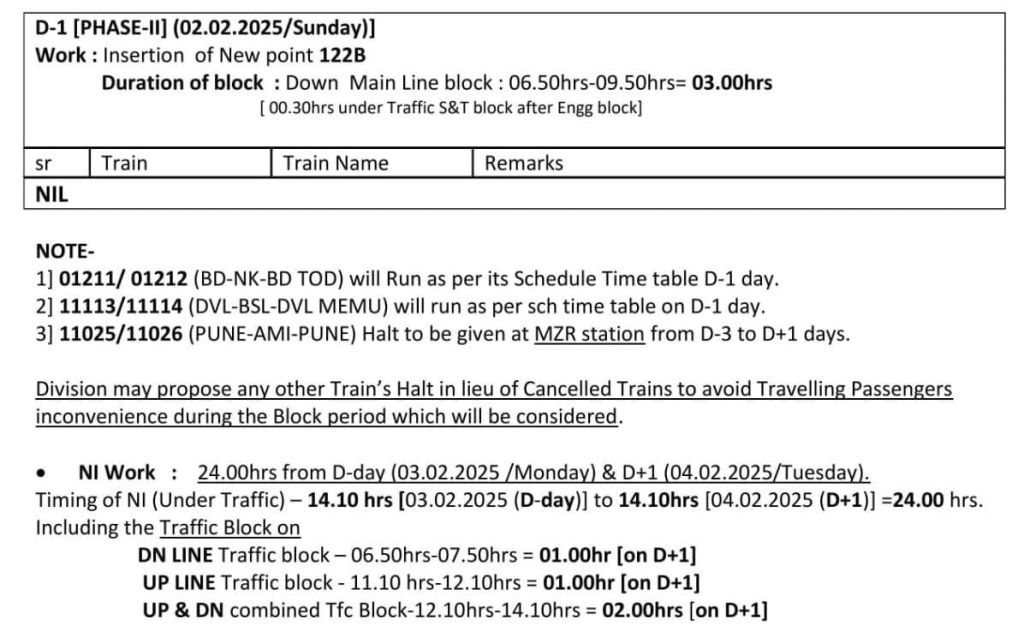 कोई भी यात्री गाड़ी ब्लॉक के चलते बाधित नही रहेंगी।