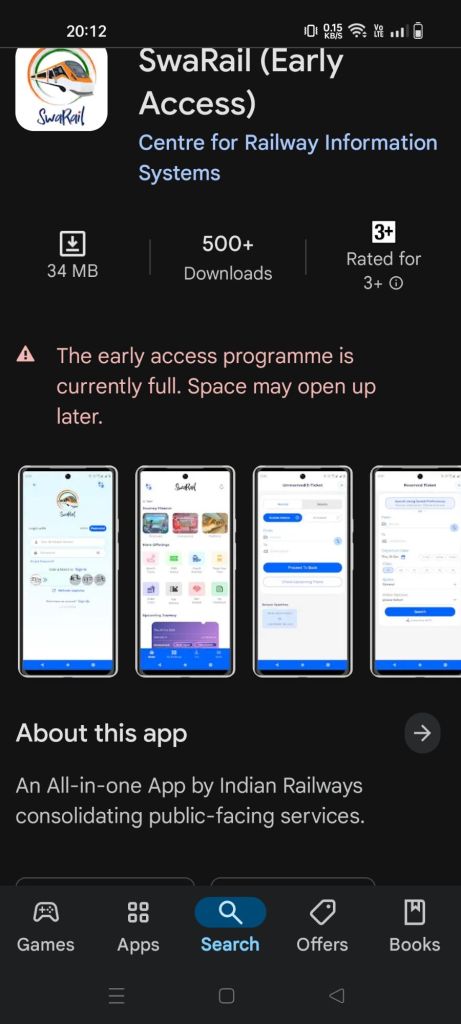 जी हाँ! आप रेल विभाग की सेवाओंके लिए अलग अलग ऍप, वेबसाइट खंगालते परेशान हो चुके थे। टिकट आरक्षित करने एक तो अनारक्षित टिकट के लिए अलग।  गाड़ियोंको ट्रैक करने के लिए एक तो रेल मद्त माँगने फिर दूजा ऍप। पार्सल बुकिंग, ट्रेकिंग के लिए कही और जाना पड़ रहा है, बहुत परेशानी थी। माननीय प्रधानमंत्री जी ने इस बात पर संज्ञान लेकर रेल विभाग की सारी सार्वजनिक सेवाओं को समेकित करने वाला एक ही ‘ऑल इन वन’ ऍप बनाया जाए, यह सूचना दी थी। उसी के मद्देनजर भारतीय रेल विभाग के सेंटर फॉर रेल इन्फर्मेशन सिस्टम्स CRIS ‘क्रिस’ ने SwaRail नामक ऍप बनाया है।