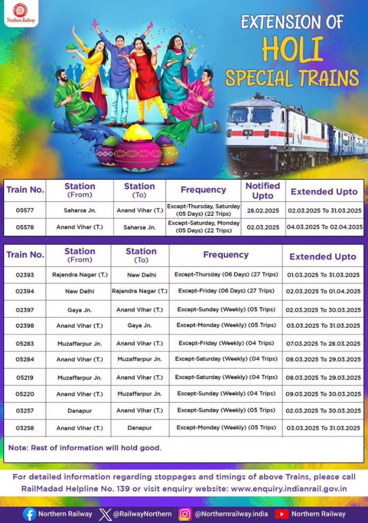 अन्य होली विशेष गाड़ियाँ मार्च अन्त तक चलती रहेंगी।
