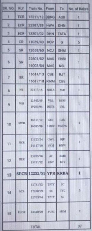 पन्धराह क्षेत्रीय रेल्वेज को कुल 37 LHB रैक का आवंटन किया जा रहा है।
