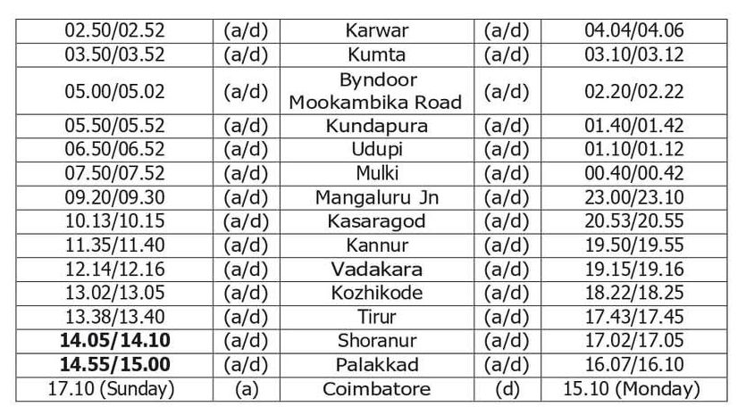 02198 सुपरफास्ट दिनांक 13 जून से 17 अक्टूबर 2025 तक प्रत्येक शुक्रवार को जबलपुर से निकल रविवार को कोयम्बटूर पहुँचेंगी। वापसी में 02197 सुपरफास्ट दिनांक 16 जून से 20 अक्टूबर 2025 तक प्रत्येक सोमवार को कोयम्बटूर से निकल बुधवार को जबलपुर पहुँचेंगी।