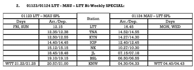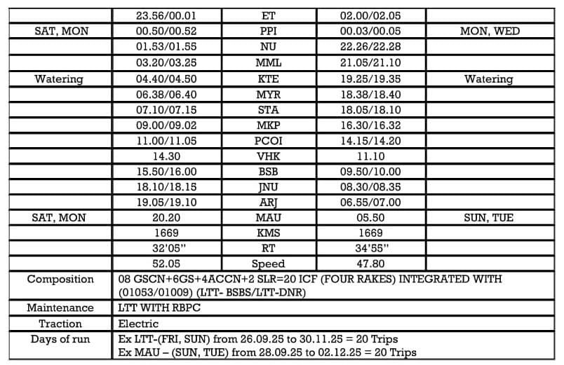 2: 01123/24 लोकमान्य तिलक टर्मिनस मऊ लोकमान्य तिलक टर्मिनस द्विसाप्ताहिक विशेष दिनांक 26/9 से 02/12 तक 20-20 फेरे