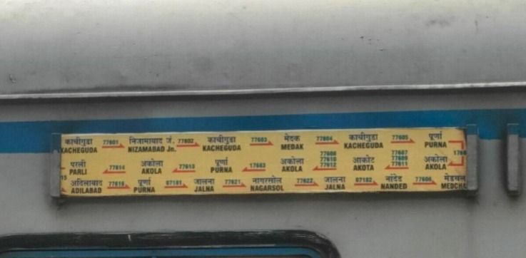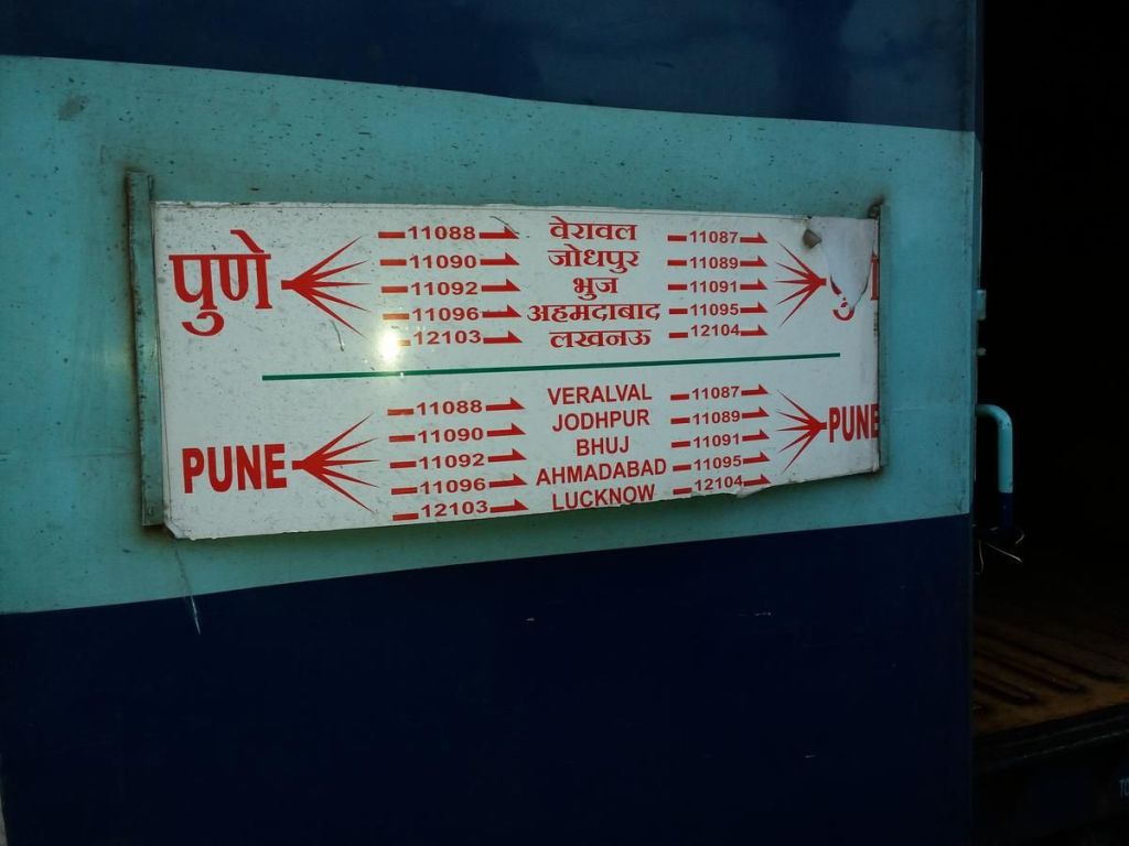 निम्नलिखित बोर्ड 11039/11040/ 01023/01024 अर्थात कोल्हापुर गोन्दिया कोल्हापुर महाराष्ट्र एवं पुणे कोल्हापुर पुणे विशेष गाड़ी का संयुक्त बोर्ड है। परेशानी तब होती है, पुणे में 11039 कोल्हापुर गोन्दिया महाराष्ट्र एक्सप्रेस एवं 01023 पुणे कोल्हापुर विशेष इन दोनों ही गाड़ियोंका पुणे से रवाना होने का समय लगभग एक सा है। महाराष्ट्र एक्सप्रेस से गोन्दिया जानेवाले यात्री बेचारे बोर्ड की समानता को देखते हुए कई बार पुणे कोल्हापुर विशेष में सवार हो जाते है।