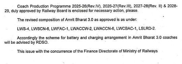 खैर, मूल मुद्दा कुछ अलग ही है, भारतीय रेल ने अमृतभारत एक्सप्रेस के रैक में सीरीज 1, 2 बनाई थी। जिनमे उन्हें लगातार अपग्रेड आवृत्ति में लाया गया। अब अमृतभारत एक्सप्रेस की सीरीज 3 लाई जा रही है। यह वह सीरीज है, जिसमे अमृतभारत एक्सप्रेस की मूल संकल्पना को ध्वस्त कर दिया है। यह गाड़ी अब जनसामान्य यात्रिओंकी न रह कर सर्वसाधारण मेल/एक्सप्रेस की कोच संरचना वाली गाड़ी बनकर रह जाएगी। रेल मुख्यालय से जारी, निम्नलिखित आदेश देखिए