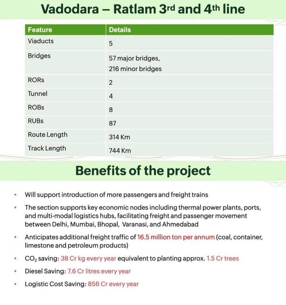 3: गुजरात और मध्य प्रदेश में 259 किलोमीटर लंबी वडोदरा – रतलाम तीसरी और चौथी लाइन
