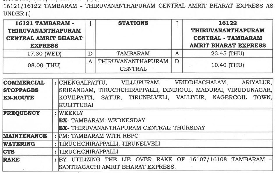16121/22 तम्बाराम तिरुवनंतपुरम सेंट्रल तम्बाराम साप्ताहिक अमृतभारत एक्सप्रेस