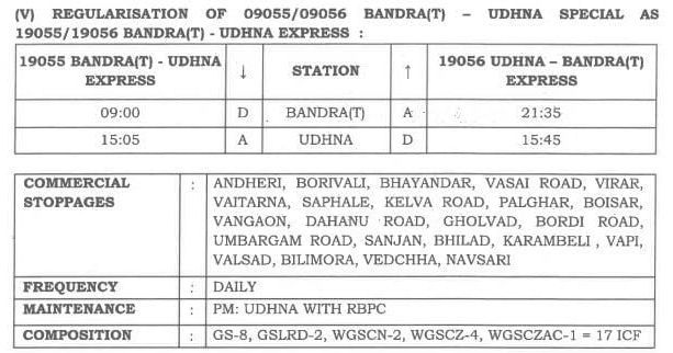 19055/56 (09055/56) बांद्रा टर्मिनस उधना बांद्रा टर्मिनस प्रतिदिन इंटरसिटी