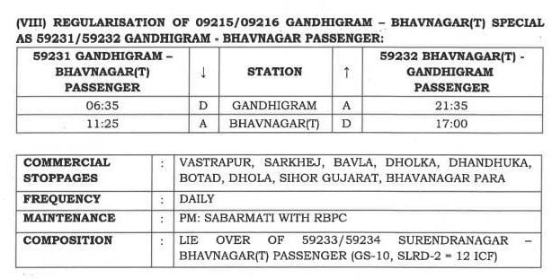 59231/32 (09215/16) गांधीग्राम भावनगर गांधीग्राम सवारी