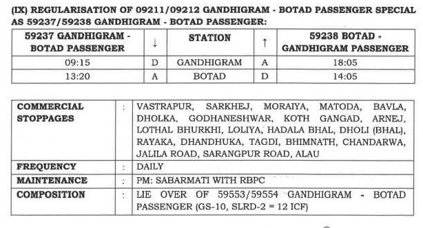 59237/38 (09211/12) गांधीग्राम बोटाद गांधीग्राम सवारी