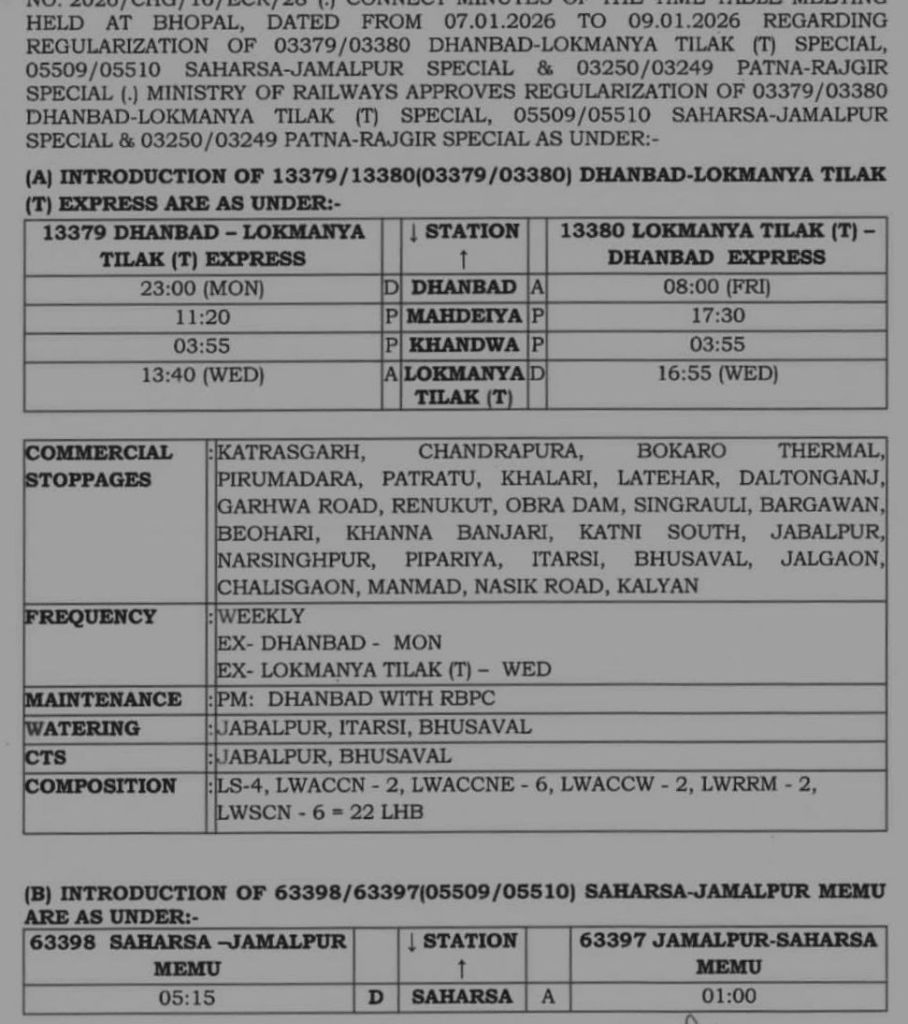 13379/80 (03379/80) धनबाद लोकमान्य तिलक टर्मिनस धनबाद साप्ताहिक एक्सप्रेस