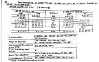 11047/48 (01027/28) दादर गोरखपुर दादर सप्ताह में चार दिन परिचालित एक्सप्रेस