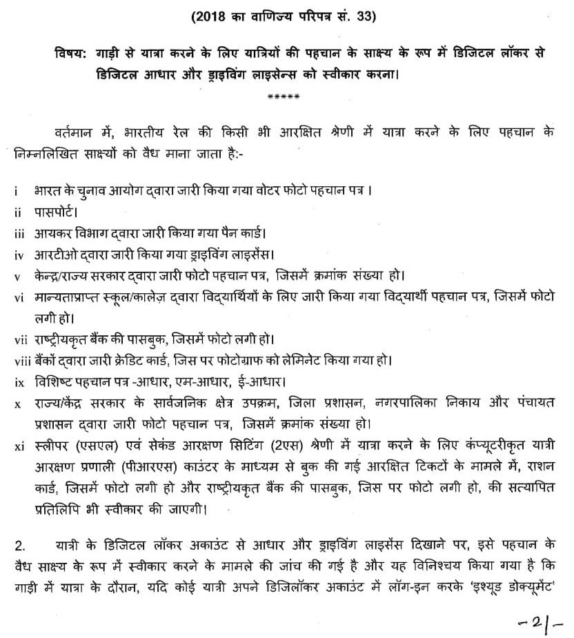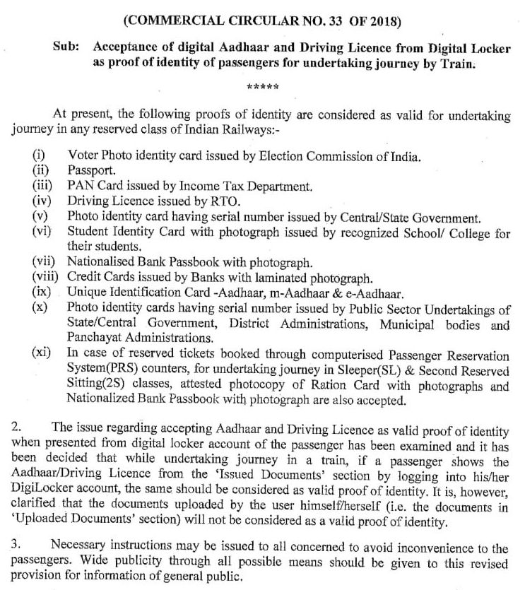 उपरोक्त परिपत्र में वैध पहचानपत्र की सूची और डिजिलॉकर में स्थित पहचानपत्र का उपयोग दिया गया है।
