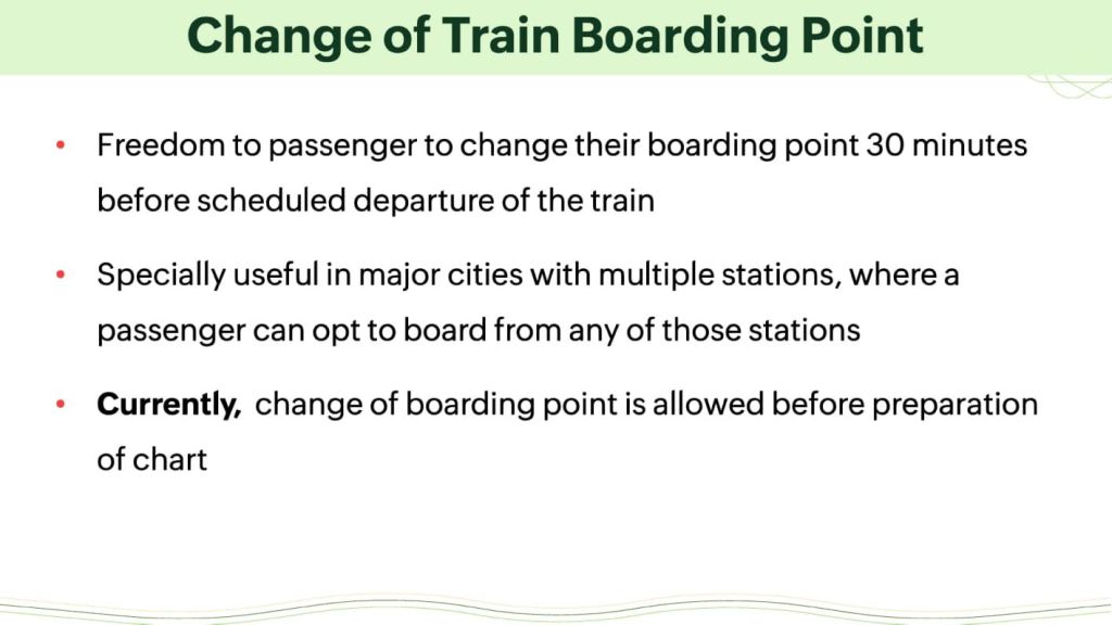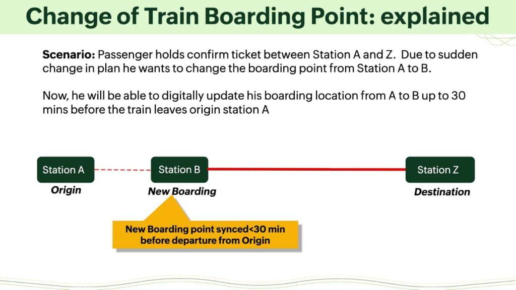 इसके साथ ही बोर्डिंग स्टेशन बदलने के नियम में भी बदलाव किए गए है। लेकिन परिपत्र का इंतज़ार है।