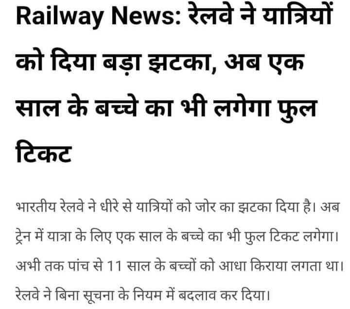 एक बड़े लोकप्रिय दैनिक में यह खबर आई है, और यात्री बेचारे परेशान हो गए। वरिष्ठ नागरिकोंकी रियायत का मसला अभी अधर में ही है और इस खबर से तहलका मच गया की बच्चोंकी रियायत भी छीन गयी?