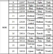 मित्रों, दपुरे SER की कुछ पुनर्बहाल की जा रही गाड़ियोंकी समयसारणी हमे प्राप्त हुई है, यज्ञपी कुछ चित्र बहुत ही अस्पष्ट है जिसके लिए हम खेद ही प्रगट कर सकते है।