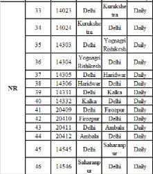 1) 14023/24 दिल्ली जंक्शन कुरुक्षेत्र दिल्ली जंक्शन प्रतिदिन एक्सप्रेस