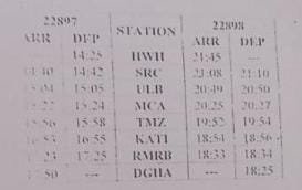 यात्रिओंसे नम्र निवेदन है, विस्तृत समयसारणी हेतु कृपया रेलवे की हेल्पलाइन, वेबसाइट या ऐप की सहायता ले।