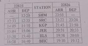 3) 22825/26 शालीमार चेन्नई सेंट्रल शालीमार साप्ताहिक एक्सप्रेस