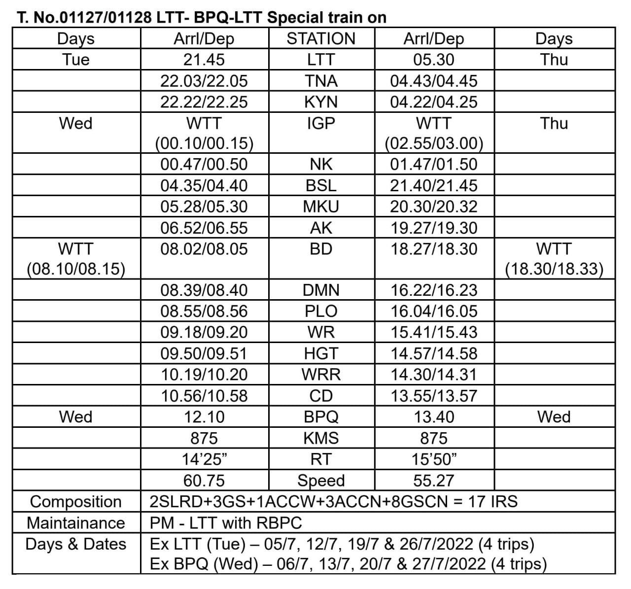 เคเคพเฅเฅ เคเฅเคฐเคฎเคพเคเค 01123 เคตเคฟเคถเฅเคท เคฆเคฟเคจเคพเคเค 9.7.2022 เคเฅ เคญเฅเคธเคพเคตเคฒ เคธเฅ 13.30 เคฌเคเฅ เคชเฅเคฐเคธเฅเคฅเคพเคจ เคเคฐ เค
