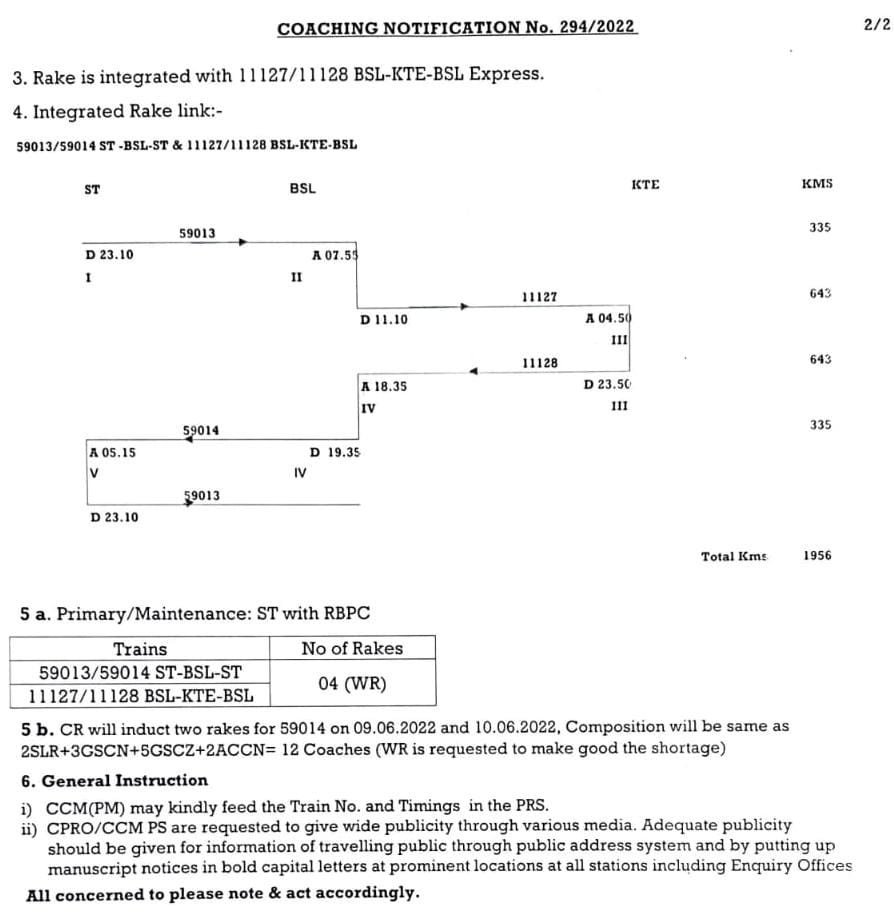 दरअसल गड़बड़ी कहाँ हुई, यह हम समझाने का प्रयास करते है। यह निम्नलिखित गाड़ी के सम्बंध में जारी किया गया मध्य रेल का परिपत्रक देखिए, स्थिति समझने जे लिए आपको रैक शेयरिंग वाला कैटेगरी का हिस्सा देखना होगा। दरअसल मध्य रेल ने जो पत्रक जारी किया उसमे 19005/06 का रैक शेयरिंग 11127/28 भुसावल कटनी भुसावल एक्सप्रेस से किया गया है। रैक शेयरिंग का चार्ट भी देखते है।