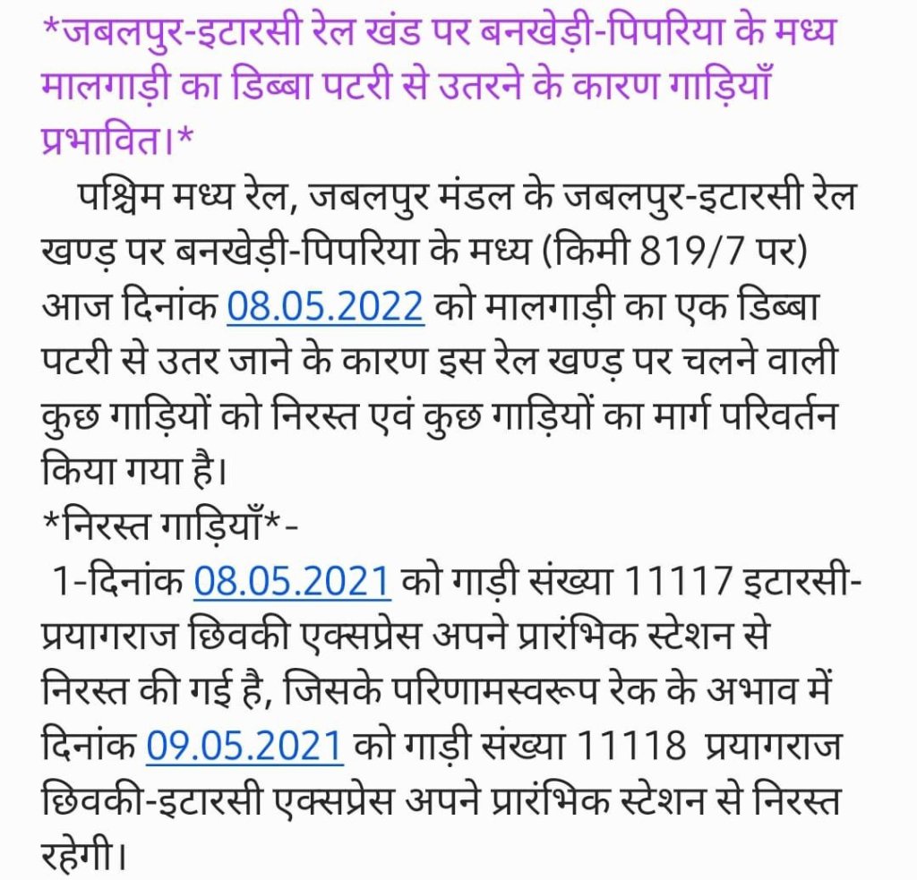 संक्रमण काल मे भारतीय रेल ने तमाम गाड़ियाँ बन्द कर दी थी, जिन्हें एक-एक कर चलवा दिया। भलेही स्वरूप बदला हो, किराया बढ़ गया हो मगर गाड़ियाँ चल पड़ी।