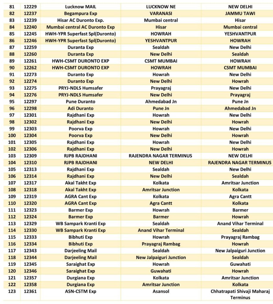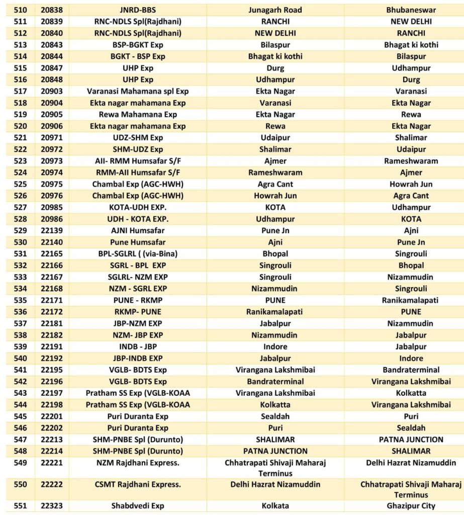 12437/38 सिकन्दराबाद हज़रत निजामुद्दीन सिकन्दराबाद साप्ताहिक राजधानी