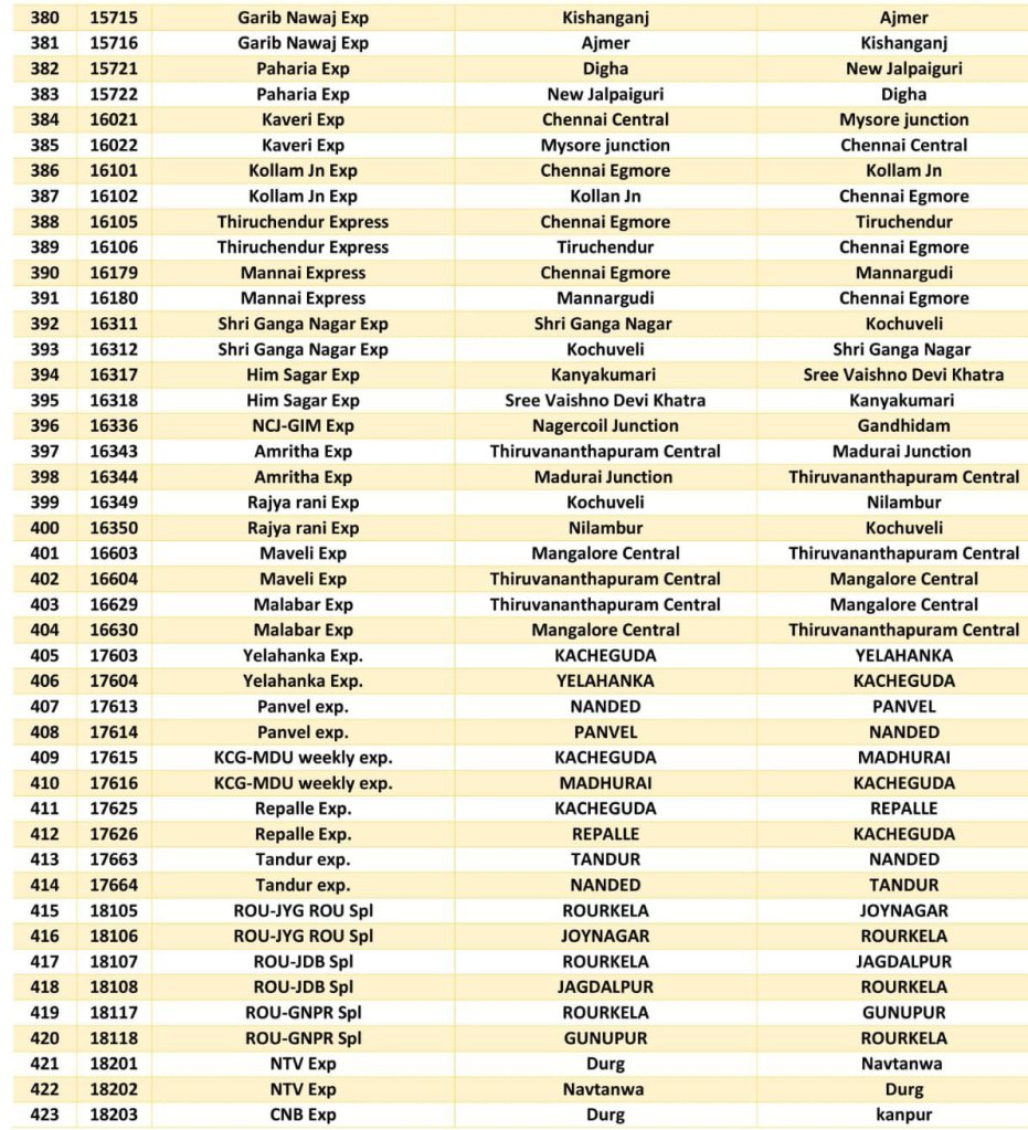 12433/34 एम जी आर चेन्नई सेन्ट्रल हज़रत निजामुद्दीन एम जी आर चेन्नई सेंट्रल द्विसाप्ताहिक राजधानी