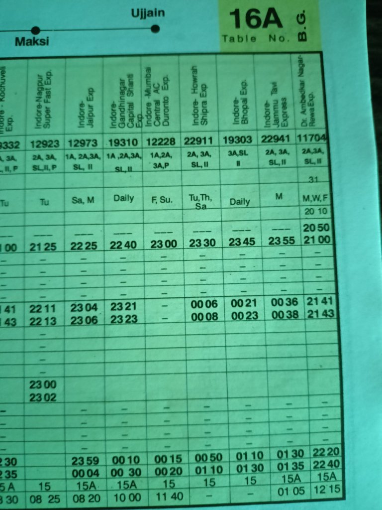 19303/04 गाड़ी की नेमप्लेटवर्ष 2019, माह जुलै, वेस्ट झोन टाइम टेबल में छपा टेबल नम्बर 16A, गाड़ी 19303 इन्दौर भोपाल एक्सप्रेस की समयसारणी