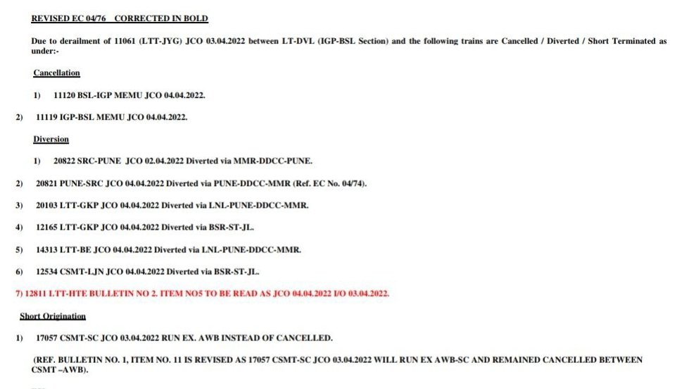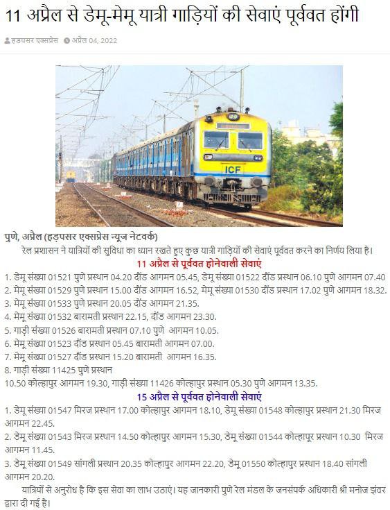“रेलवे 15 एप्रिल से डीजल लोको द्वारा चलाये जानेवाली गाड़ियोंके यात्रिओंसे अतिरिक्त किराया वसूलेगी।”