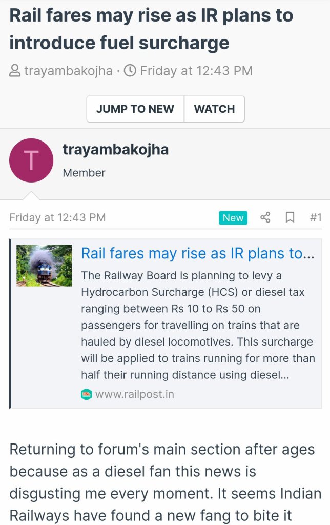 फिर क्या, बड़े बड़े ? ज्ञानी इस जाल में उलझते चले गए। कोई रेलवे पर चिढ़ रहा था तो कोई यात्री की तरफ से बोले जा रहा था की भई, गाड़ी डीजल लोको खींच रहा है, उसमे यात्री का भला क्या दोष? वह क्यों चुकाए ऐसा सरचार्ज? एक से बढ़कर एक कॉमेंट और बढ़ चढ़ कर बहस!