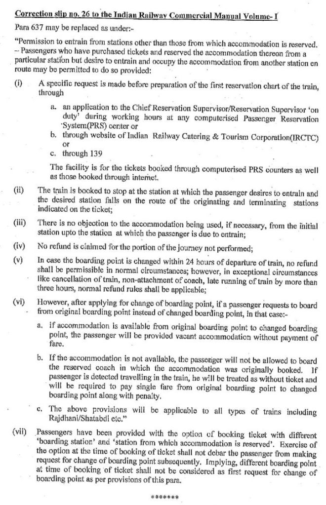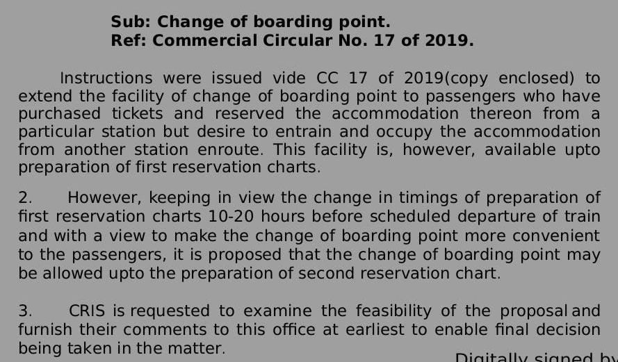 เคฌเฅ‹เคฐเฅเคกเคฟเค‚เค— เคชเฅ‰เค‡เคจเฅเคŸ เคฌเคฆเคฒเคจเฅ‡ เค•เฅ€ เคธเฅเคตเคฟเคงเคพ เค•เคพ เคฆเฅเคฐเฅเคชเคฏเฅ‹เค— เคธเฅ€เคงเฅ‡ เคฐเฅ‡เคฒ เค†เคฐเค•เฅเคทเคฃ เค•เฅ‡ เค•เฅ‹เคŸเฅ‡ เคธเฅ‡ เคœเฅเฅœเคคเคพ เคนเฅˆเฅค เคฌเคนเฅเคค เคธเฅ‡ เคฏเคพเคคเฅเคฐเฅ€ เคฌเฅœเฅ‡ เค•เฅ‹เคŸเฅ‡ เคธเฅ‡ เค†เคฐเค•เฅเคทเคฃ เค•เคฐเคคเฅ‡ เคนเฅˆ เค”เคฐ เคฌเฅ‹เคฐเฅเคกเคฟเค‚เค— เค•เฅ‡ เคฒเคฟเค เค…เคชเคจเฅ‡ เคธเฅเคตเคฟเคงเคพเคจเฅเคธเคพเคฐ เคธเฅเคŸเฅ‡เคถเคจ เค•เคพ เคšเฅเคจเคพเคต เค•เคฐเคคเฅ‡ เคนเฅˆเฅค เค…เคฌ เคคเค• เคฌเฅ‹เคฐเฅเคกเคฟเค‚เค— เคธเฅเคŸเฅ‡เคถเคจ เคฌเคฆเคฒเคจเฅ‡ เค•เฅ€ เค…เคตเคงเคฟ เคชเฅเคฐเคฅเคฎ เคšเคพเคฐเฅเคŸเคฟเค‚เค— เคธเฅ‡ เคชเคนเคฒเฅ‡ เคคเค• เคฅเฅ€เฅค เคšเฅ‚เคเค•เคฟ เคšเคพเคฐเฅเคŸเคฟเค‚เค— เค•เคพ เคธเคฎเคฏ เค—เคพเฅœเฅ€ เคชเฅเคฐเคธเฅเคฅเคพเคจ เคธเคฎเคฏ เคธเฅ‡ 4 เค˜เคฃเฅเคŸเฅ‡ เคชเฅ‚เคฐเฅเคต เคธเฅ‡ เคฌเคฆเคฒ เค•เคฐ เค…เคฌ 10 เค˜เคฃเฅเคŸเฅ‡ เคชเฅ‚เคฐเฅเคต เคนเฅ‹ เค—เคฏเคพ เคนเฅˆ เค…เคคเคƒ เคฐเฅ‡เคฒ เคชเฅเคฐเคถเคพเคธเคจ เคšเคพเคนเคคเคพ เคนเฅˆ, เคธเฅเคŸเฅ‡เคถเคจ เคฌเฅ‹เคฐเฅเคกเคฟเค‚เค— เคฌเคฆเคฒเคจเฅ‡ เค•เฅ€ เคธเฅเคตเคฟเคงเคพ เค•เฅ‹ เคชเฅเคฐเคฅเคฎ เคšเคพเคฐเฅเคŸเคฟเค‚เค— เคธเคฎเคฏ เค•เฅ€ เคœเค—เคน เคฆเฅเคตเคฟเคคเฅ€เคฏ เคฏเคพเคจเฅ‡ เค…เคจเฅเคคเคฟเคฎ เคšเคพเคฐเฅเคŸเคฟเค‚เค— เคœเฅ‹ เค—เคพเฅœเฅ€ เคชเฅเคฐเคธเฅเคฅเคพเคจ เคธเคฎเคฏ เคธเฅ‡ เคฎเคนเคœ 30 เคฎเคฟเคจเคŸ เคชเคนเคฒเฅ‡ เค•เคฟเคฏเคพ เคœเคพเคคเคพ เคนเฅˆ, เคคเคฌ เคคเค• เคฆเคฟเคฏเคพ เคœเคพเคเฅค เคจเคฟเคฎเฅเคจเคฒเคฟเค–เคฟเคค เคธเฅ‚เคšเคจเคพ เคฆเฅ‡เค–เฅ‡เค‚,