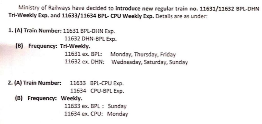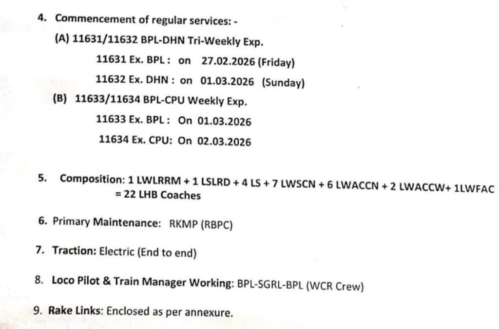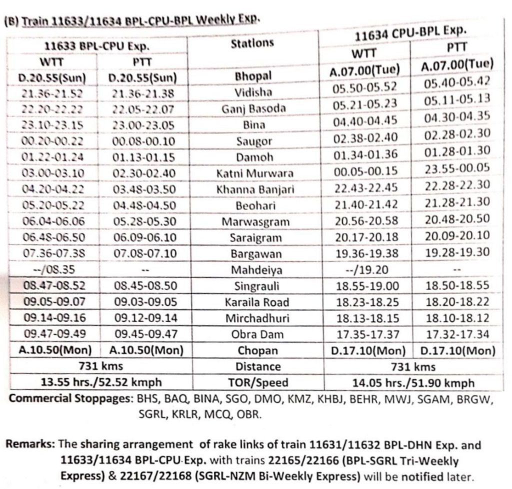 11631/32 เคญเฅ‹เคชเคพเคฒ เคงเคจเคฌเคพเคฆ เคญเฅ‹เคชเคพเคฒ เคคเฅเคฐเคฟเคธเคพเคชเฅเคคเคพเคนเคฟเค• เคเค•เฅเคธเคชเฅเคฐเฅ‡เคธ เค”เคฐ 11633/34 เคญเฅ‹เคชเคพเคฒ เคšเฅ‹เคชเคจ เคญเฅ‹เคชเคพเคฒ เคธเคพเคชเฅเคคเคพเคนเคฟเค• เคเค•เฅเคธเคชเฅเคฐเฅ‡เคธ เค‡เคจ เค—เคพเฅœเคฟเคฏเฅ‹เค‚เค•เฅ‡ เคถเฅเคญเคพเคฐเค‚เคญ เค•เฅ‡ เคซเฅ‡เคฐเฅ‡ เค•เคพ เคฌเฅเคฏเฅŒเคฐเคพ เคจเคฟเคฎเฅเคจเคชเฅเคฐเค•เคพเคฐ เคธเฅ‡ เคนเฅˆ,