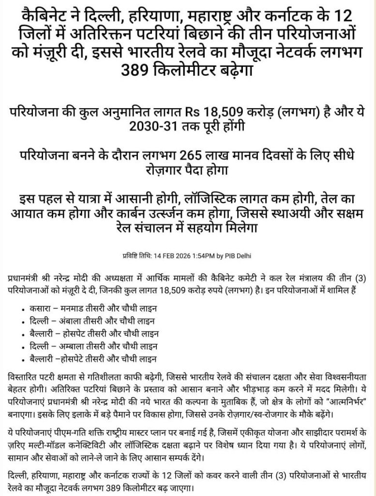 เค•เฅˆเคฌเคฟเคจเฅ‡เคŸ เคฆเฅเคตเคพเคฐเคพ เคจเคฟเคฎเฅเคจเคฒเคฟเค–เคฟเคค เคฐเฅ‡เคฒ เคชเคฐเคฟเคฏเฅ‹เคœเคจเคพเค“เค‚ เค•เฅ‹ เคฎเค‚เคœเฅ‚เคฐเฅ€ เคฆเฅ€ เค—เคˆเฅค เค‰เคจเคฎเฅ‡เค‚ เคธเฅ‡ เค•เคธเคพเคฐเคพ – เคฎเคจเคฎเคพเฅœ เค–เคฃเฅเคก เค•เคพ เคตเคฟเคธเฅเคคเฅƒเคค เคฌเฅเคฏเฅŒเคฐเคพ เคฏเคนเคพเค เคชเฅเคฐเคธเฅเคคเฅเคค เคนเฅˆ,