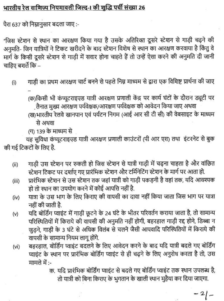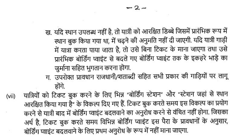เฅ™เฅˆเคฐ เคฐเฅ‡เคฒ เคชเฅเคฐเคถเคพเคธเคจ เคšเคพเคนเคคเคพ เคนเฅˆ, เคคเฅ‹ เคตเฅˆเคธเคพ เคญเฅ€ เคนเฅ‹ เคœเคพเคเค—เคพ เค•เคฟ เคฏเคพเคคเฅเคฐเฅ€ เค…เคชเคจเคพ เคฌเฅ‹เคฐเฅเคกเคฟเค‚เค— เคธเฅเคŸเฅ‡เคถเคจ เคšเคพเคฐเฅเคŸเคฟเค‚เค— เคนเฅ‹เคจเฅ‡ เค•เฅ‡ เค†เคงเฅ‡ เค˜เค‚เคŸเฅ‡ เคชเคนเคฒเฅ‡ เคคเค• เคญเฅ€ เคฌเคฆเคฒ เคธเค•เฅ‡เค—เคพ เค”เคฐ เคฐเฅ‡เคฒ เคตเคฟเคญเคพเค— เค•เฅ‹ เคคเฅ‹ เคฌเฅเค•เคฟเค‚เค— เคธเฅเคŸเฅ‡เคถเคจ เคธเฅ‡ เค—เคจเฅเคคเคตเฅเคฏ เคคเค• เค•เคพ เค•เคฟเคฐเคพเคฏเคพ เคฎเคฟเคฒ เคšเฅเค•เคพ เคนเฅˆ, เคฏเคพเคคเฅเคฐเฅ€ เคฌเฅเค•เคฟเค‚เค— เคธเฅเคŸเฅ‡เคถเคจ เคธเฅ‡ เคธเคตเคพเคฐ เคนเฅ‹ เคฏเคพ เคฎเคพเคฐเฅเค— เค•เฅ‡ เค•เคฟเคธเฅ€ เค…เคจเฅเคฏ เคธเฅเคŸเฅ‡เคถเคจ เคธเฅ‡ เค‰เคจเฅเคนเฅ‡เค‚ เค•เฅ‹เคˆ เค†เคชเคคเฅเคคเคฟ เคจเคนเฅ€ เคนเฅˆเฅค เคฌเคธ เคฏเคน เคฅเคพ เค•เฅ€ เคตเคน เคœเค—เคน เค•เคฟเคธเฅ€ เค…เคจเฅเคฏ เคœเคฐเฅ‚เคฐเคคเคฎเค‚เคฆ เคฏเคพเคคเฅเคฐเฅ€ เค•เฅ‹ เคจเคนเฅ€ เคฎเคฟเคฒ เคชเคพเคเค—เฅ€เฅค