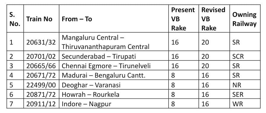 22223/24 मुम्बई छत्रपति शिवाजी महाराज टर्मिनस – साईं नगर शिर्डी – मुम्बई छत्रपति शिवाजी महाराज टर्मिनस वन्देभारत एक्सप्रेस JCO 07 सितम्बर 2025, कल्याण से साईं नगर शिर्डी तक परावर्तित मार्ग कल्याण, लोनावला, पुणे, दौंड कॉर्ड, अहमदनगर होकर चलेगी। नियमित मार्ग के कल्याण से शिर्डी के बीच सभी स्टोपेजेस रद्द समझे जाएंगे।