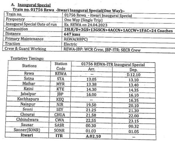 आज माननीय प्रधानमंत्री नरेन्द्र मोदी रेवा से जबलपुर, नैनपुर, छिंदवाड़ा होते हुए नागपुर इतवारी को जोड़नेवाली एक्सप्रेस का उद्धाटन करने जा रहे है। 01756 रेवा इतवारी उद्धाटन विशेष गाड़ी को दोपहर 12:10 को रवाना किया जाएगा।