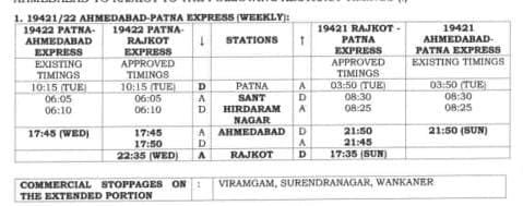 1: 19421/22 अहमदाबाद पटना अहमदाबाद साप्ताहिक एक्सप्रेस