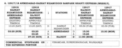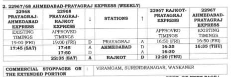 मा. रेल राज्य मन्त्री दर्शना जरदोष ने ट्वीट कर यह जानकारी दी है, सौराष्ट्र की जनता के सुविधा हेतु अहमदाबाद से संचालित की जाने वाली छह जोड़ी गाड़ियाँ जल्द ही राजकोट स्टेशन तक विस्तारित की जा रही है। इसकी संक्षिप्त समयसारणी रेल प्रशासन ने जारी की है।