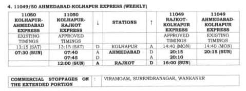 4: 11049/50 अहमदाबाद कोल्हापुर अहमदाबाद साप्ताहिक एक्सप्रेस