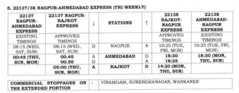 5: 22138/37 अहमदाबाद नागपुर अहमदाबाद त्रिसाप्ताहिक प्रेरणा सुपरफास्ट