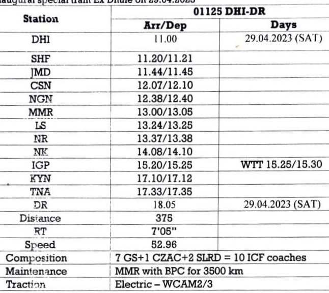 11011/12 मुम्बई छत्रपति शिवाजी महाराज टर्मिनस – धुळे – मुम्बई छत्रपति शिवाजी महाराज टर्मिनस एक्सप्रेस अब दिनांक 12 नवम्बर से नियमित रूप से शुरू होने जा रही है।