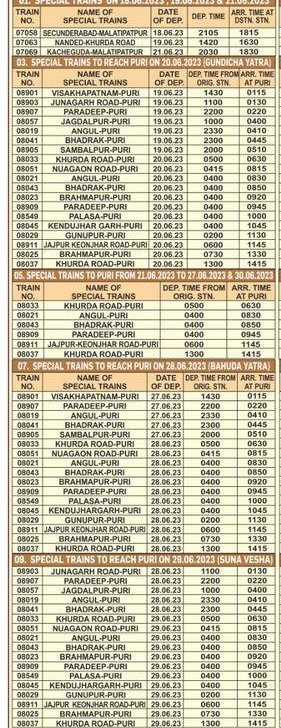 महाप्रभु कल दिनांक 20 जून आषाढ़ शुद्ध द्वितीया को रथ में विराज रहे है। भारतीय रेल भक्त गणों को इस रथयात्रा के दर्शन कराने 208 विशेष गाड़ियोंकी व्यवस्था कर रही है। आइए जानते है,